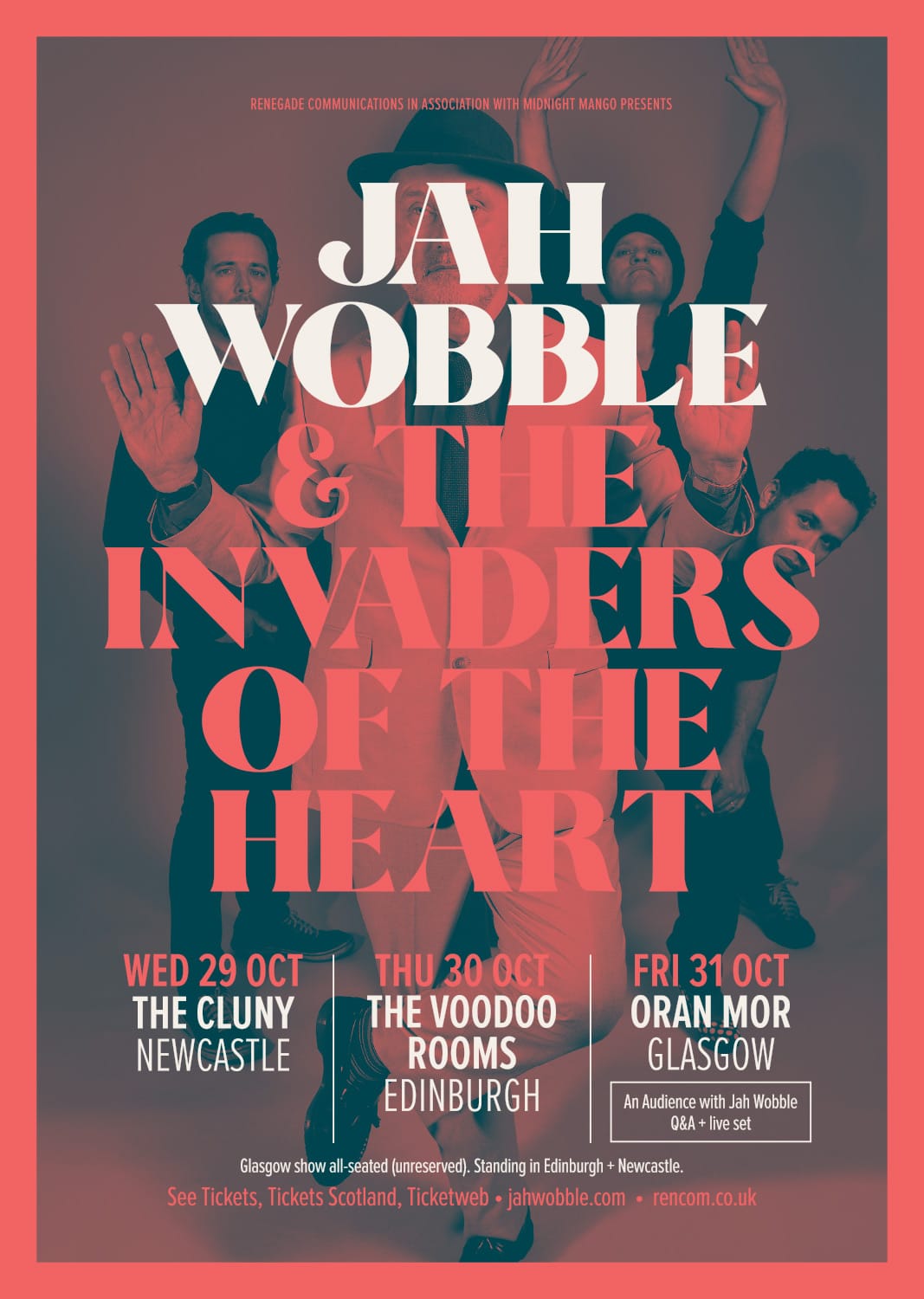Accompanied by his band, Invaders of the Heart, Jah Wobble is reborn into a new decade as defiant as ever with a brand new UK tour.