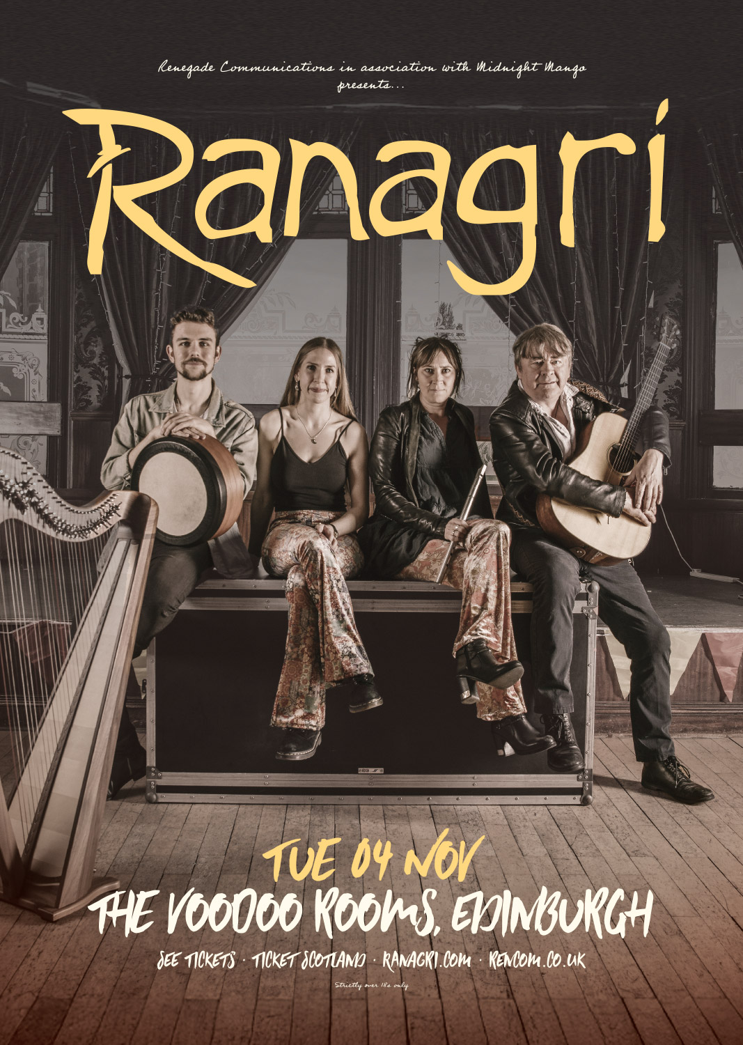 Ranagri has established themselves as a standout act, drawing in crowds from around the world with their captivating live performances and exceptional musicianship. They have performed at some of the most prestigious venues & festivals across the UK and Europe, including Cambridge Folk Festival, Bloom festival (Dublin), Montelago festival (Italy),Towersey Festival, a headline slot at Costa Festival Ibiza 2023, Birmingham Symphony Hall, The Union Chapel, Kings Place London along with regular tours of Scotland and Europe.