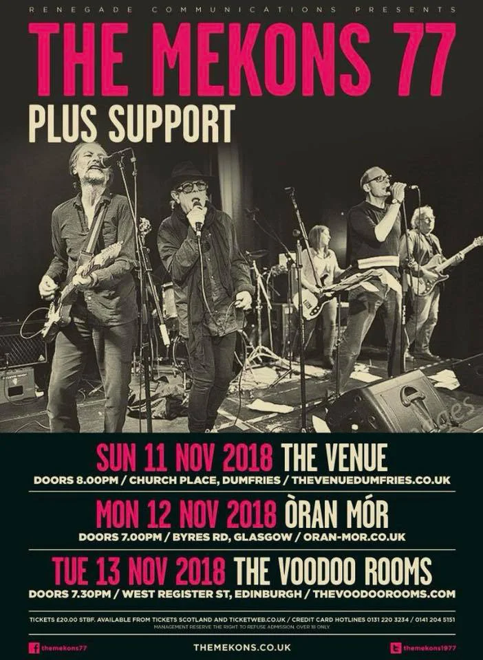 Through the years, the band’s musical style has evolved, incorporating aspects of country music, folk music, alternative rock and even occasional experiments with dub. The band has experienced several changes in line-up since their formation 40 years ago, and although the current line-up of “Mekons” are writing and recording music, playing shows and touring, the original “The Mekons 77” have reunited and are playing live shows for a limited time.