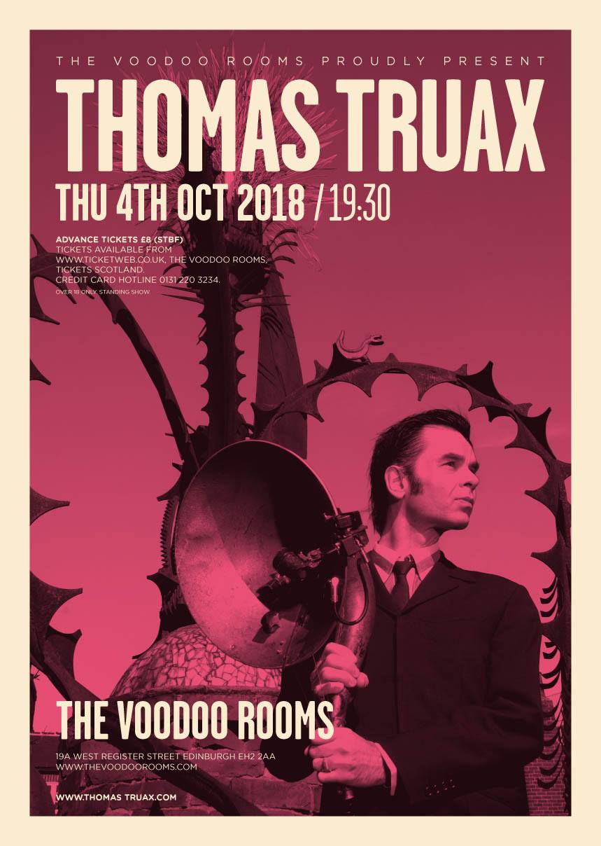 Truax crafts rich, poetically evocative songs about insects, trees, technology, and a lifelong obsession with things lunar, including various reasons ‘Why Dogs Howl at The Moon’. Notable supporters and collaborators include Jarvis Cocker, Duke Special, Richard Hawley, Amanda Palmer, Brian Viglione (of the Dresden Dolls/Violent Femmes) and the late author Terry Pratchett.