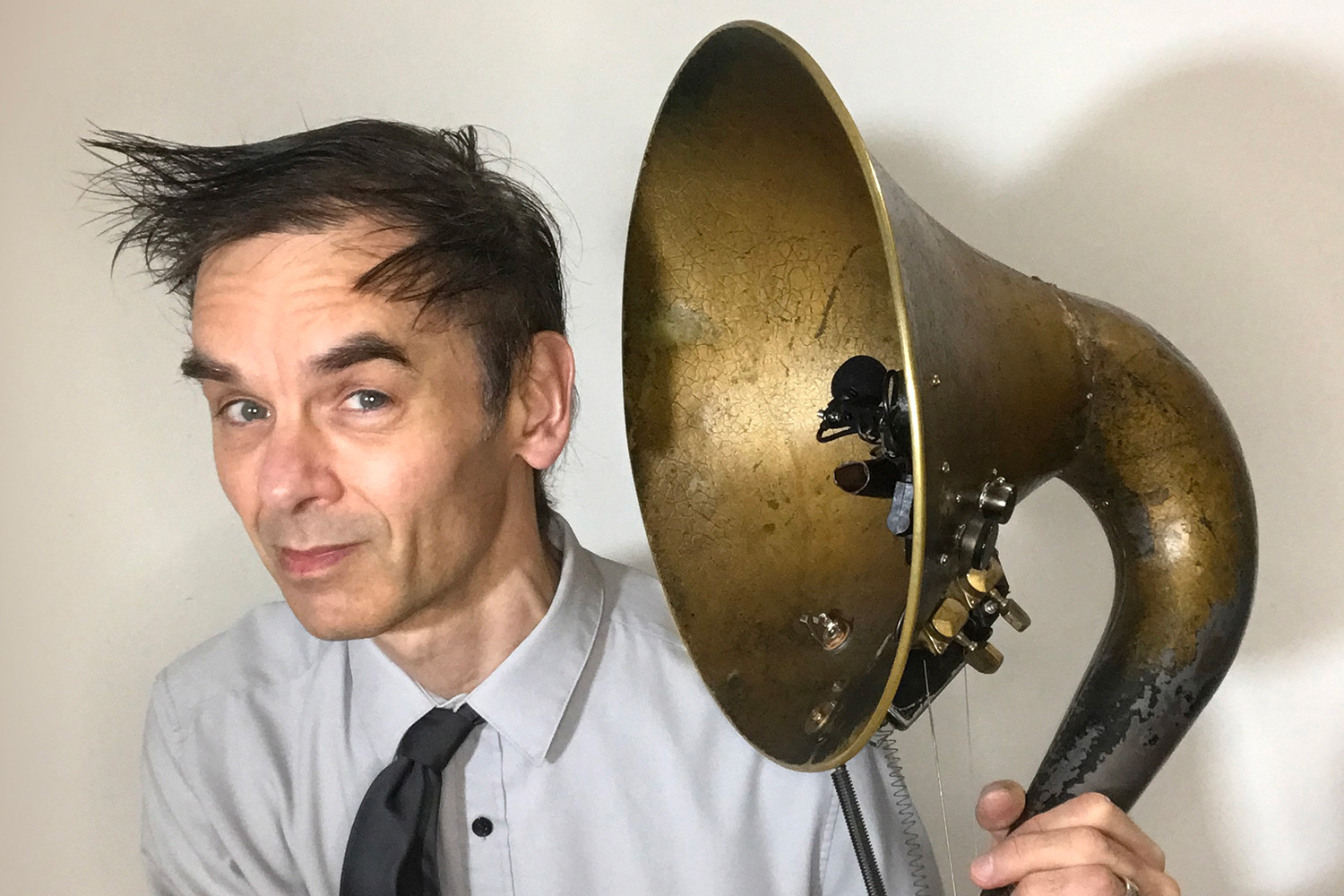 One of the most imaginative characters on the pop music fringe, since the year 2000 Thomas has been traveling the world performing with his evolving “band” of bizarre self-made Harry Partch-esque instruments including a motorized drum machine made of bike wheels called ‘Mother Superior’ and a pimped-up Dr. Seuss-ian Gramophone called ‘The Hornicator’, as well as his venerable resonator guitar ‘Hank’. Time Out magazine has dubbed him “The king of home-made instruments” while Splendid magazine called him “one of the five or ten best singer/songwriters in the world that you’ve never heard of…an exceptional talent, unique and resistant to comparison, yet fairly accessible even to casual listeners.”