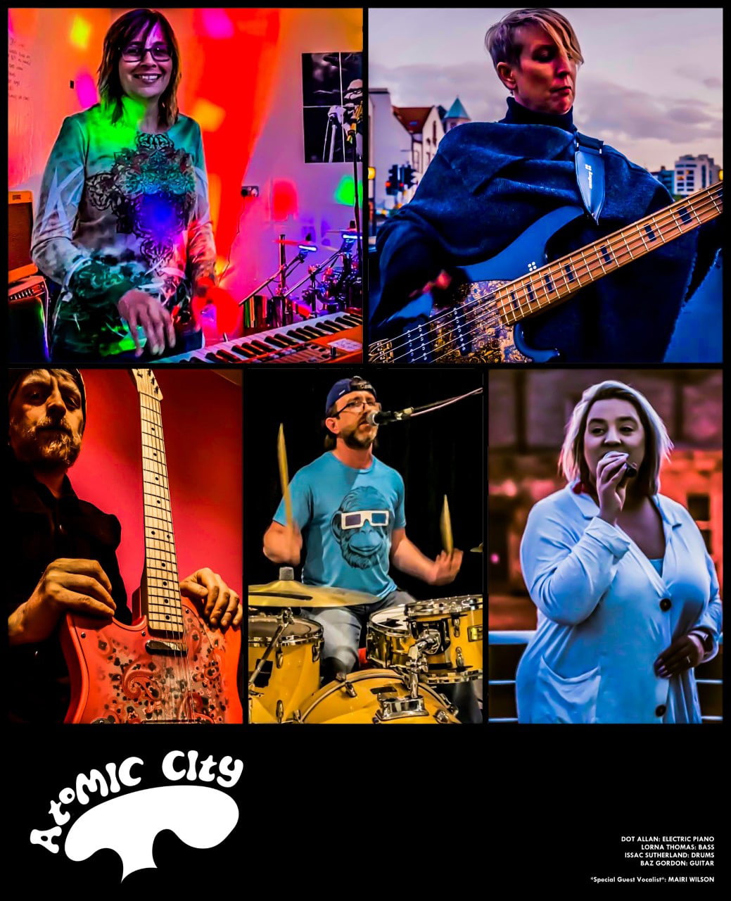 Atomic City are a new, dynamic, funk quartet from Scotland. The group consists of guitarist Baz Gordon (James Brown Is Annie), bassist Lorna Thomas (Horse), electric piano player Dot Allan (Macy Gray/ Lee ‘Scratch’ Perry) and drummer Isaac Sutherland (Pale Moon). Joined by a rotating roster of quality guest vocalists, the band specialise in funky reimaginations of familiar tunes.