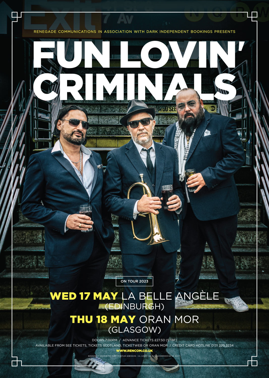 Fun Lovin’ Criminals’ infectious blend of cinematic hip-hop, rock ‘n’ roll, blues-jazz , latin-soul burst onto the New York music scene in 1996 with the release of the worldwide multi-platinum debut album ‘Come Find Yourself’ on EMI Records.