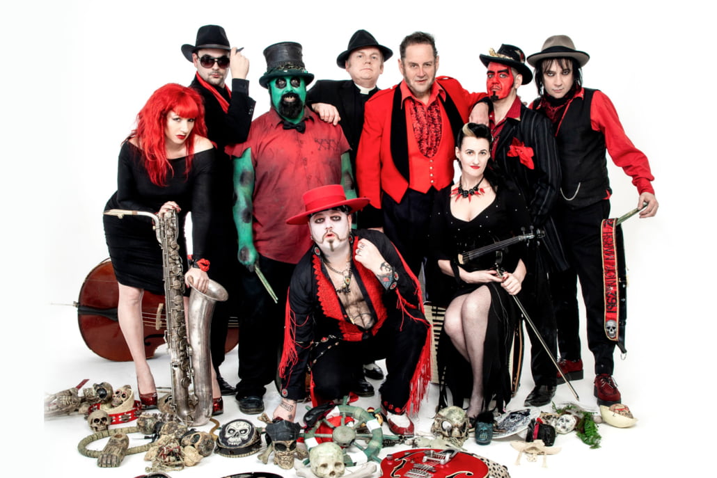 Featuring up to nine musicians at any given time, The ‘Machine mash-up guitars, twin drummers, fiddle, trumpet, tuba, banjo, washboard, upright bass, gong, mandolin, accordion, harmonicas, saxophone, sousaphone and even empty bottles and tie racks to create their unique brand of Bourbon Soaked Gypsy Blues Bop’n’Stroll.